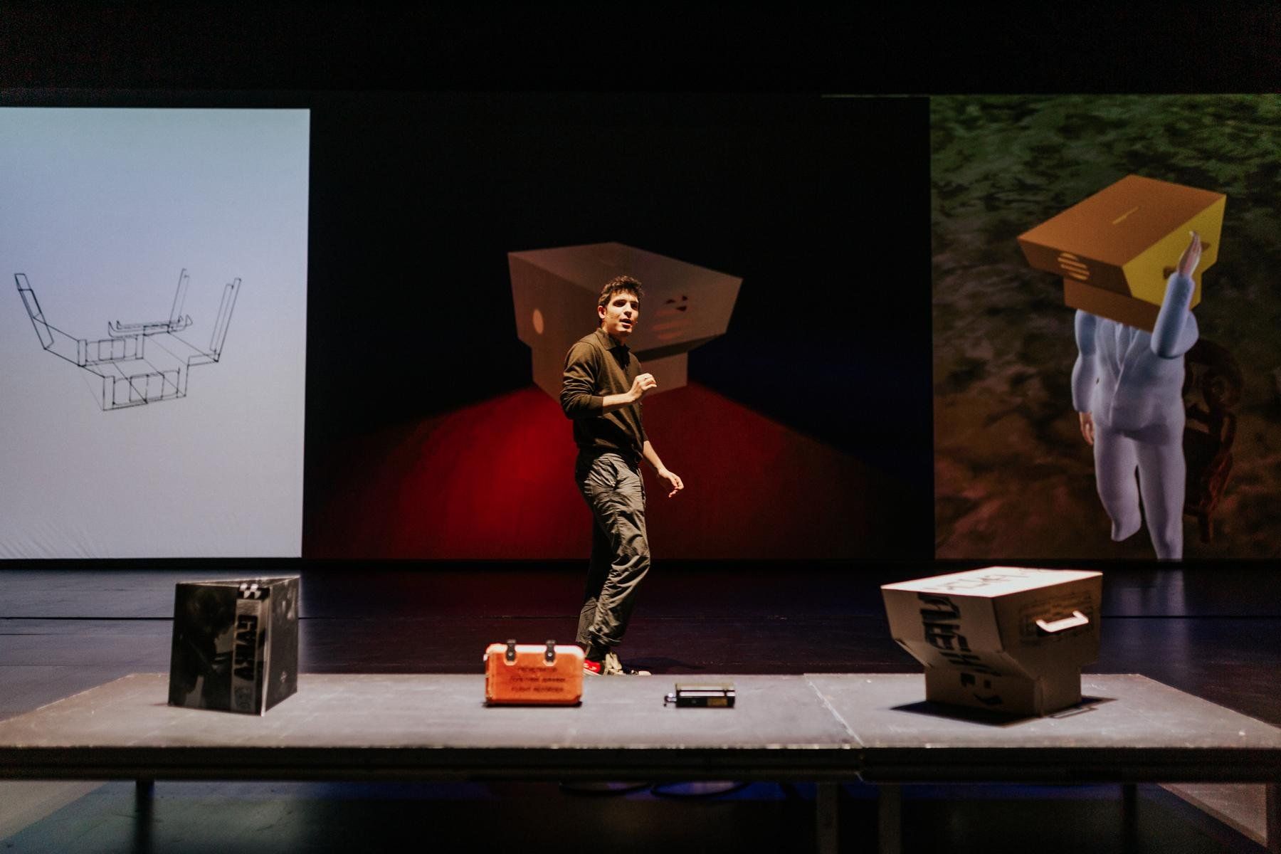 En cuanto a Antropologies de la caixa negra, del colectivo Eina Idea creo que no lograron llegar a donde esperaban, ya que el que el dispositivo escénico parecía habitado de manera estéril. Si bien el tema era interesantísimo y, por lo tanto, al leer la sinopsis se abrían muchos interrogantes y expectativas sobre cómo sería llevada a cabo, todas las reflexiones filosóficas que se pusieron sobre la mesa fueron expuestas desde la frialdad y la poca empatía para con los espectadores. Las cajas negras retienen la memoria encriptada de las catástrofes, son un testimonio perenne que puede revelar el misterio de lo insondable de los finales, y superarlos… ¡o sea! Un temazo para sacarle jugo hasta el infinito de sus ecuaciones metafóricas. La conferencia, llena de estímulos a nivel de técnico y visual, no alcanzó a atrapar al público debido a la manera en cómo fueron tratados los signos en los cuales se anclaban y esto hacía perder el interés desde la saturación de información y el tono constantemente plano con el que se transmitían. No hablo de que tengan que ser “entretenidos” pero considero que hubo ciertas carencias de dirección o mirada externa para conducir la dinámica de la puesta en escena que, más allá de no pretender ser espectacular, sí que juega con los factores propios del hecho escénico de los que podrían valerse para dar ese salto cuántico que precisaba sin caer en la comedia Ted en la que al final se transformó.