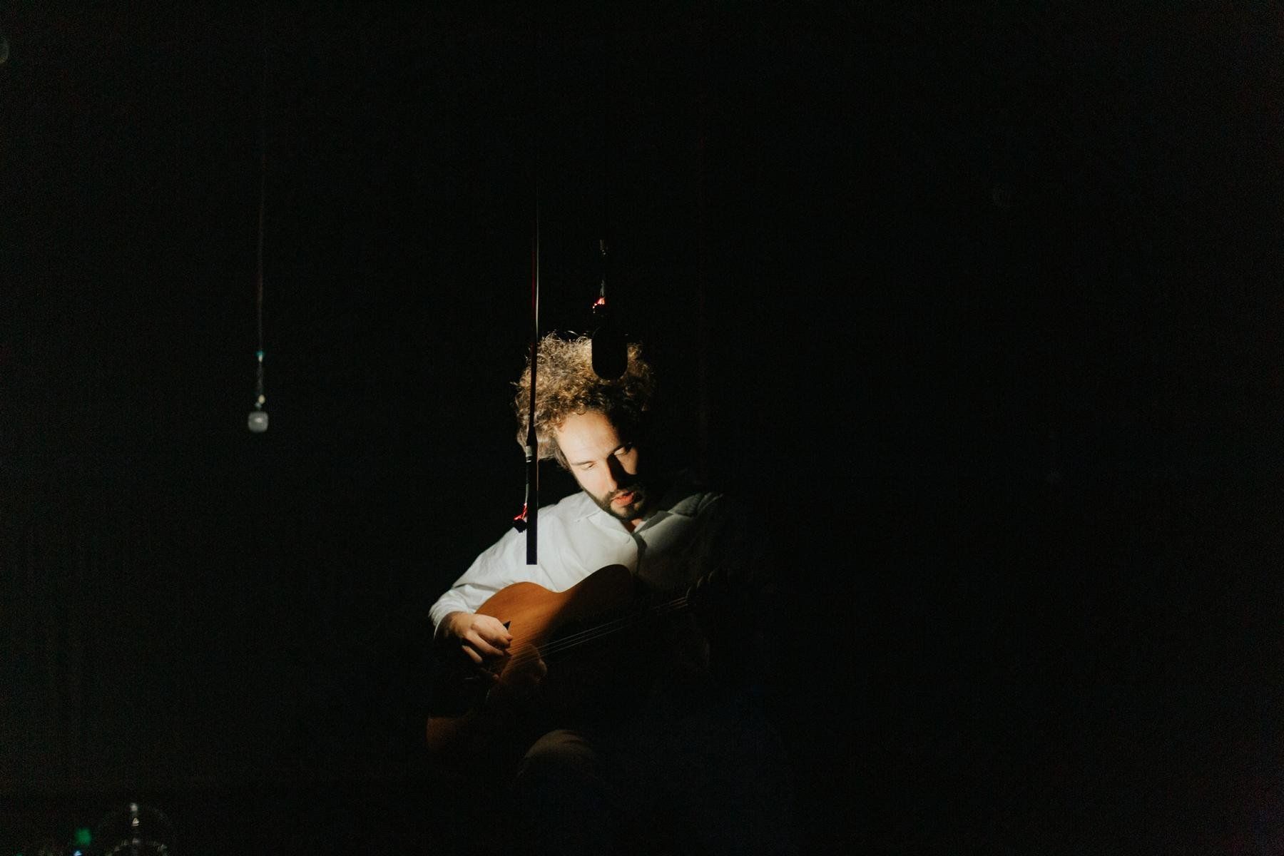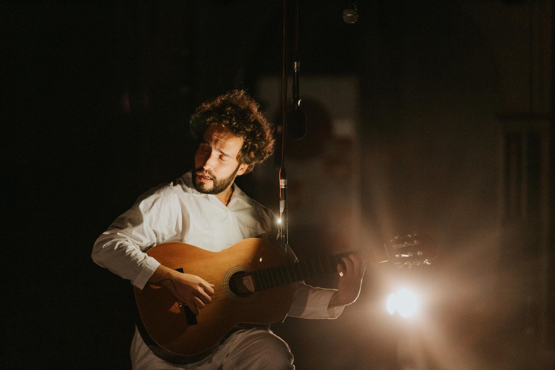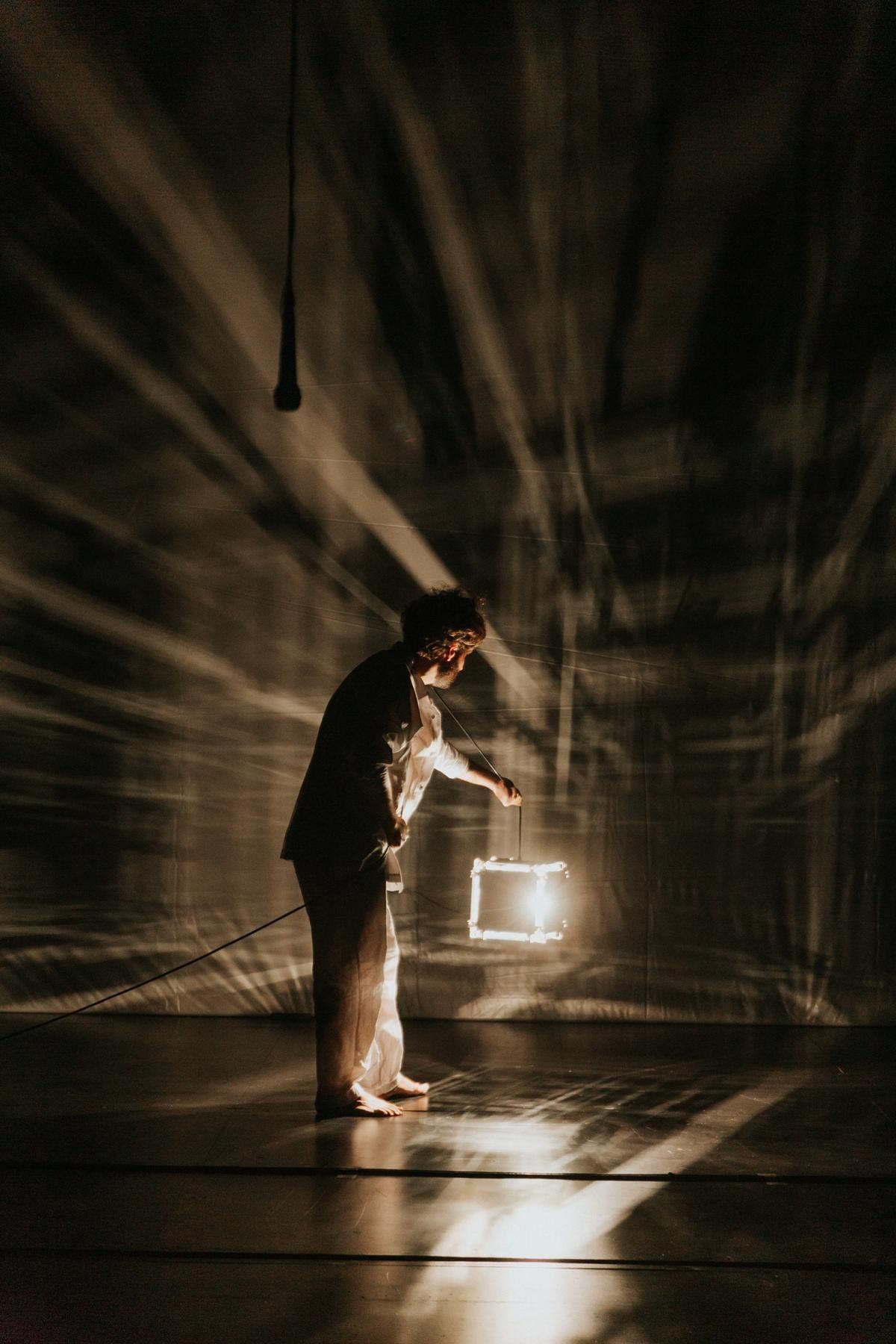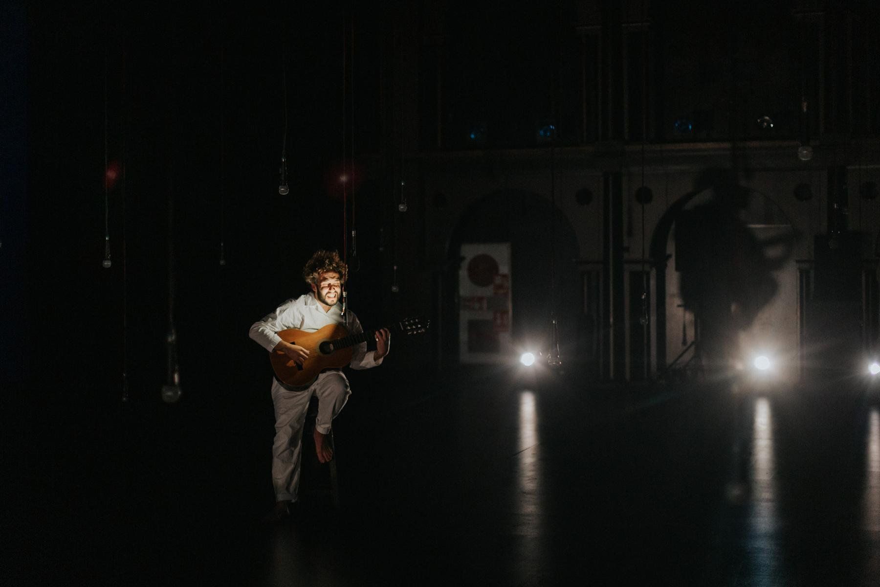 Esta obra, una perla de luz y de sombra, quedará en la retina de los asistentes por mucho tiempo. El escenario lleno de micrófonos que durante la pieza se transformaron dinámicamente en luciérnagas, explosiones, chispas, pasillos flotantes, cargados con la sensibilidad y la potencia indescifrable de Adriano que activaba regiones del cerebro que sólo permitían el goce. En él se exponen diferentes anécdotas y reflexiones sobre la alteración de la consciencia generando un recorrido casi íntimo por su manera de percibir y habitar la creación, el arte y el artista, la obra y la vida. Historias, un cuerpo en juego y dos canciones casi susurradas fueron solo un poco de lo que puedo mencionar que allí nos ofrecieron. Lo demás, hay que vivirlo.