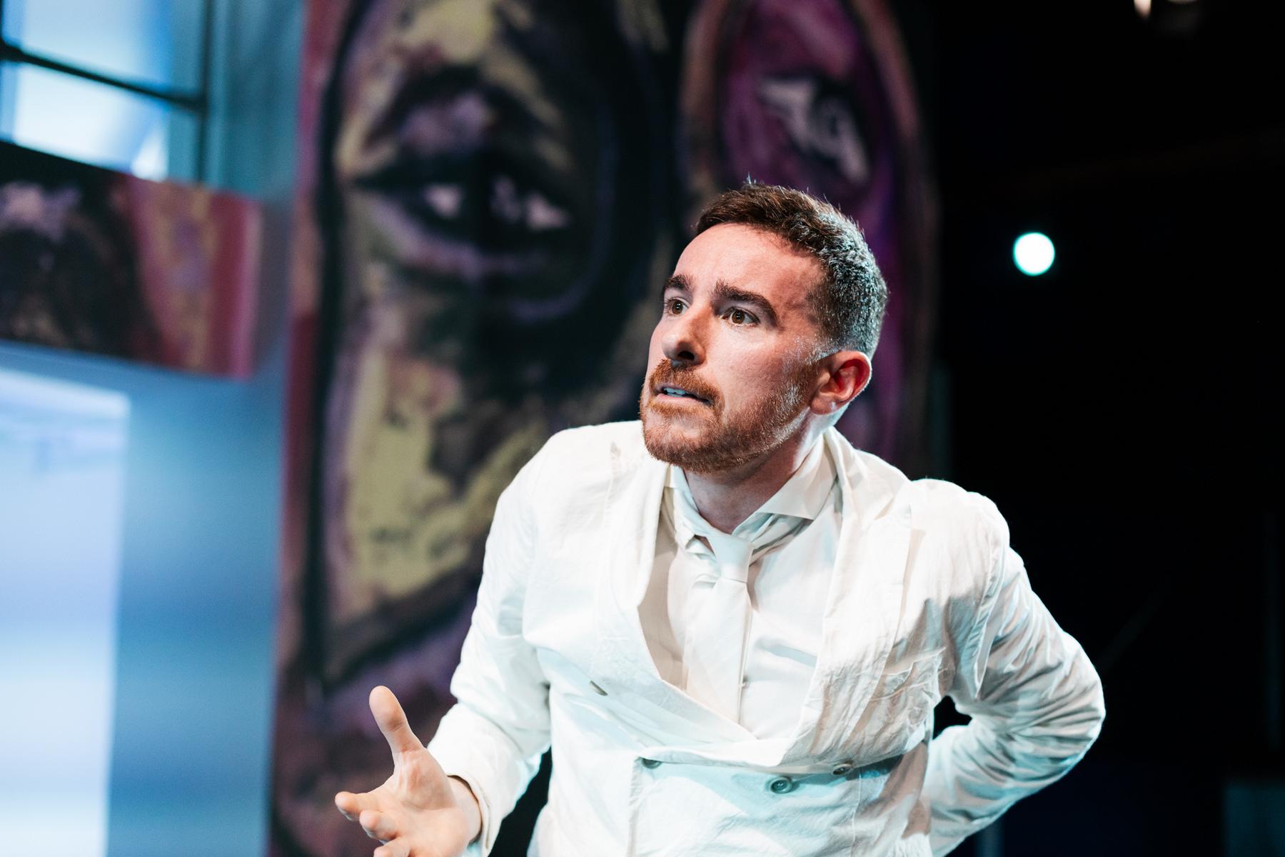En tot cas, el joc de miralls parteix d'un text –de títol impossible, L'olor eixordadora del blanc– que, sentit amb els ulls tancats, podríem qualificar de naturalista i psicologicista, perquè el que ens proposa l'autor italià Stefano Massini és un seguit de diàlegs del protagonista, Van Gogh, amb el seu germà Teo i, tot seguit, amb un cuidador i un parell de metges psiquiatres que encarnen les dues cares atribuïdes popularment a la psiquiatria –la repressora i l'alliberadora–. L'interès del text sorgeix del mecanisme que utilitza per a excitar –fins exacerbar-la– la curiositat de l'espectador amb successius girs i sorpreses argumentals que obliguen al públic un i altre cop a corregir i reenfocar el seu punt de vista, sempre al voltant del patiment de Van Gogh, del seu desig de pintar, de la necessitat d'escapar d'aquell lloc on se'l priva de qualsevol activitat o estímul, de l'angoixa de viure. El cert és que el joc de miralls comença, justament, en el text i continua en la necessitat del propi espectador d'anar corregint la història que se li narra a mesura que evolucionen els diàlegs.