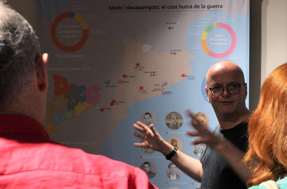 Jordi Barra, acostumat a la ràdio on fa molts anys que fa de comentarista teatral, parla a gran velocitat. De la memòria històrica passem al pensament crític. “És essencial. Especialment en una època en què no hi ha temps per a la reflexió. És essencial aprendre a qüestionar-ho i verificar-ho tot. Una exposició com la de Víctimes (1936-1945)