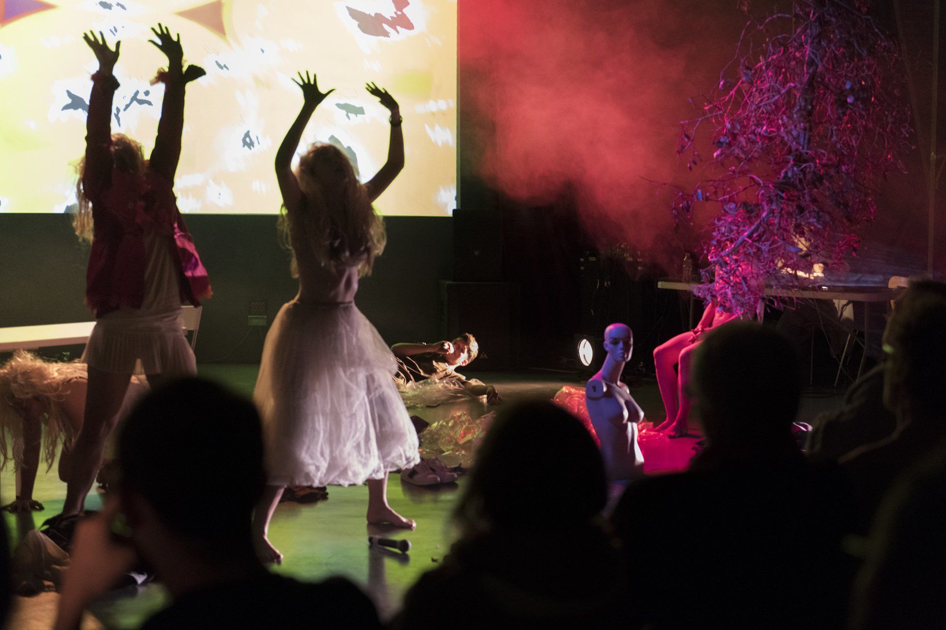 D’aquesta manera, dos dels actors són pures “presències”; per exemple, la presència performativa i enigmàtica de la dona nua que, asseguda en una cadira, sembla assistir a la representació des de la llunyania, talment com una norma decadent, o bé el ballarí de hip-hop Dalí Ponce, de qui les actuacions aparentment aleatòries potser abdueixen l’espectador cap a un món estrany, cosa que no acaba de funcionar, perquè tot i provenir de forma recognoscible d’un altre món (artístic), la capacitat de seducció del ballarí és limitada; no té a veure amb el seu art virtuós, sinó que la idea dels dos directors, Christina Schmutz i Frithwin Wagner-Lippok, encara no sembla del tot elaborada en aquests passatges. En canvi, en els moments creïbles no es representen persones completes, sinó que tan sols se'n mostren els gests: gests socials que deixen d'obeir a cap codi vinculant més enllà del moment. Un obstacle potent per a superar aquesta barrera que separa el teatre psicològic dels subjectes i els seus plans, accions i caigudes, d’una banda, d’una teatralitat (posthumana) futura de l'esdevenir-se de processos, afectes i tensions sense intervenció humana, de l'altra, és el fet que la representació escènica amenaça massa sovint d'entrebancar-se amb un peu al terreny pantanós de la comicitat irònica, mentre amb l'altre intenta aconseguir l'espagat cap al postsubjectivisme. Però anem a pams…