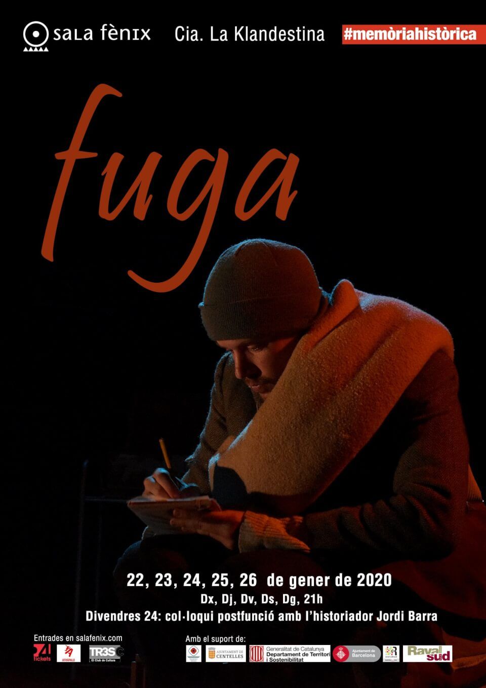 I l'últim espectacle del cicle, Fuga, de Montse Albàs. Aquí trobem l'Eduard, encallat, com jo amb l'article sobre la importància i influència de les imatges fotogràfiques de la Guerra Civil, amb el seu treball de fi de màster. La desaparició del seu avi de la residència on estava internat fa que vagi a casa dels seus pares per si aquest es presenta per allà, mentre els seus progenitors han sortit en recerca de l'ancià. L'aparició de l'avi, la relació d'aquest amb la guerra civil i les cartes del besavi desaparegut en el conflicte, afectaran i faran madurar l'Eduard, gràcies a la relació afectiva que tenen avi i nét. Cal destacar en aquesta obra una cosa que ens passa de vegades als historiadors i aquells professionals mínimament sensibles: el contacte directe amb els testimonis i afectats en tot tipus de situacions traumàtiques, com un conflicte bèl·lic, i el coneixement de les seves vivències, ens pertorba, en major o menor grau, de vegades amb efectes transformadors. Com la radioactivitat, que depenent de la seva intensitat i dels elements protectors que tinguem, ens afectarà més o menys.